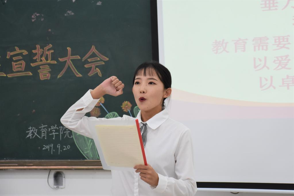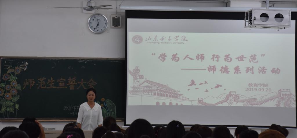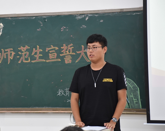 2019年9月20日,教育学院于博文楼208举办了“学为人师,行为世范”师德系列活动之师范生入学宣誓大会,18级优秀学生代表和19级新生代表参加了此次活动。