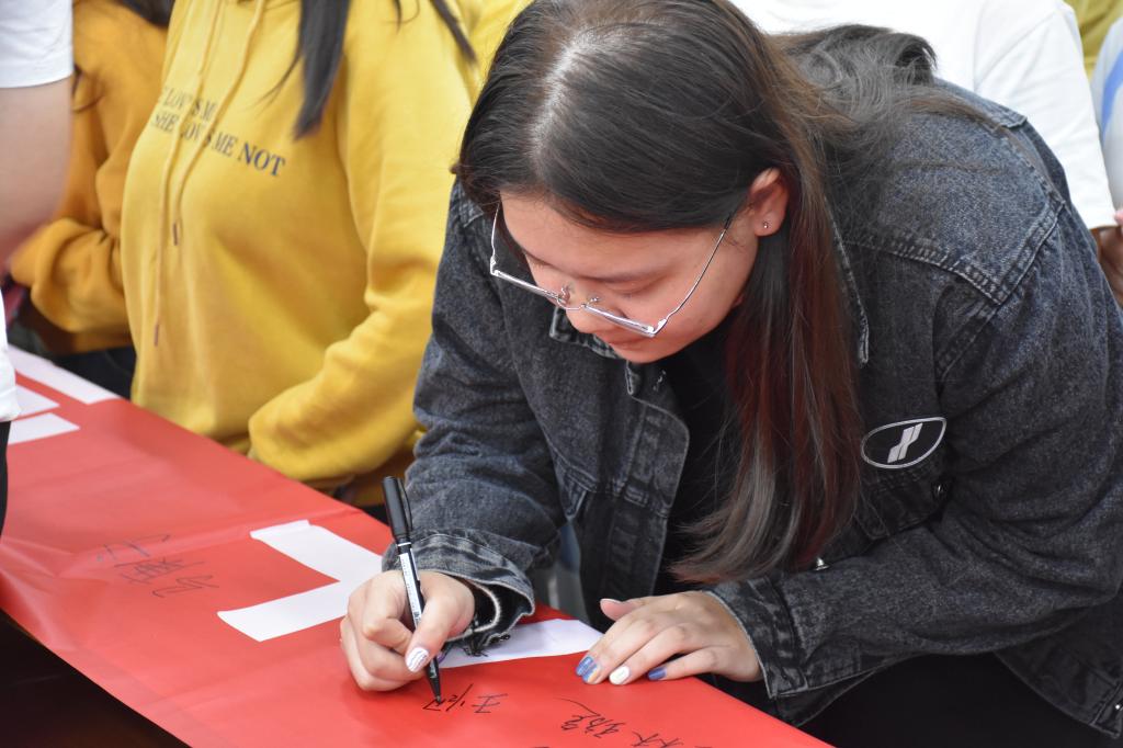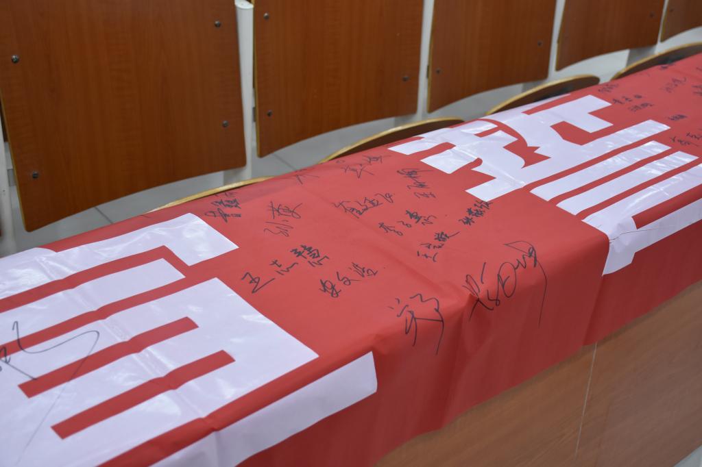 此次大会旨为在学生心中弘扬师德风范,增强师范生教书育人的责任感。在大会第一环节,学生们首先观看了一段关于师德的视频。视频中的张玉滚老师扎根于基层,无私奉献,致力于乡村教育发展,他的事迹让每位同学深受感动,在学生心中树立起了高大的优秀教师形象。随后,18级优秀学生代表傅久修进行了发言。她向19级的同学们分享了自己的学习经验以及课余时间的安排,同时也谈到作为师范生大家应要严格要求自己,全面提升自己的能力。紧接着,19级新生韩鹏龙代表教育学院全体新生进行了发言。韩鹏龙向大家说明了自己选择师范类专业的原因,他不仅想实现教书育人的梦想,也想推动中国素质教育的发展。在活动的尾声,18级学前春考班学生带来了诗朗诵《师德颂》,饱含深情地向老师们致以最崇高的尊重与敬爱!最后,在领誓人的带领下,各位学生代表起立,举起右手,庄重宣誓。那铿锵有力的誓言,令每一位同学都热血沸腾!宣誓结束后,各位同学还在横幅上庄严地写下了自己的姓名,以此来表达自己成为优秀教师的决心!