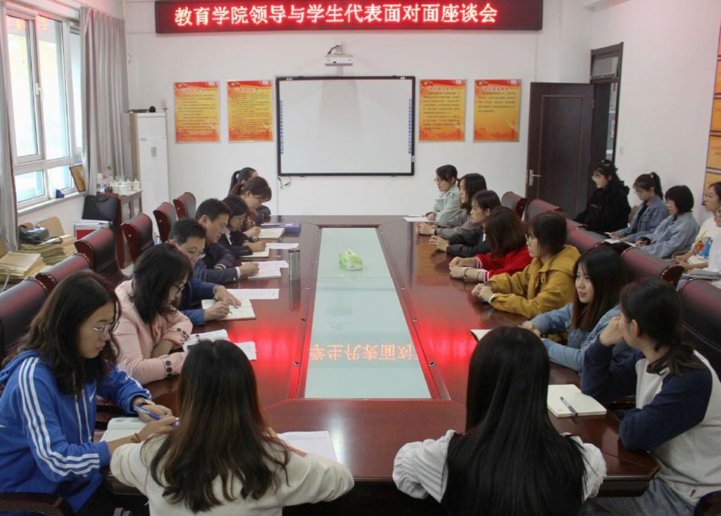 会议过程中,学院领导老师与学生代表们面对面真诚交流,代表们各抒己见,会议气氛和谐。本次座谈会的成功举办不仅拉进了同学们与老师的距离,而且解答了同学们对于学校学习与生活等方面的问题。相信此次座谈会必定会对同学们的生活起到有益的指导作用,同时也为教育学院的发展打下更坚实的基础。