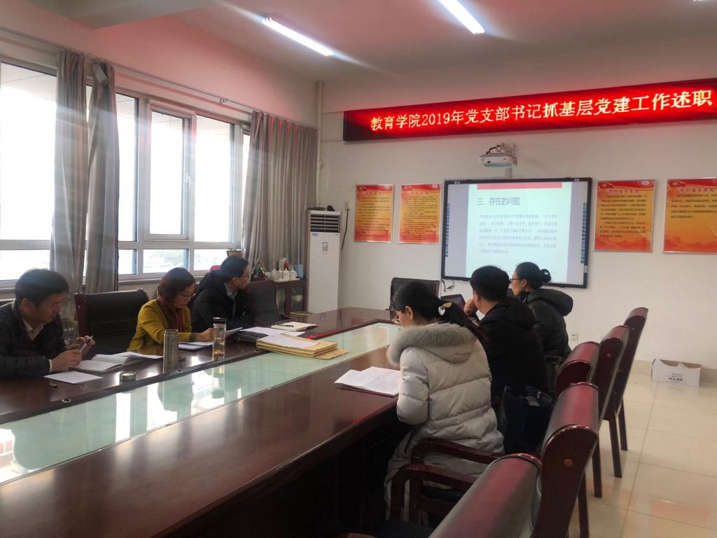 2020年1月2日下午,教育学院党总支在博学楼A201召开教育学院党支部书记抓党建述职报告会。教育学院党总支班子成员和3名党支部书记参加会议。会议由党总支书记李君主持。