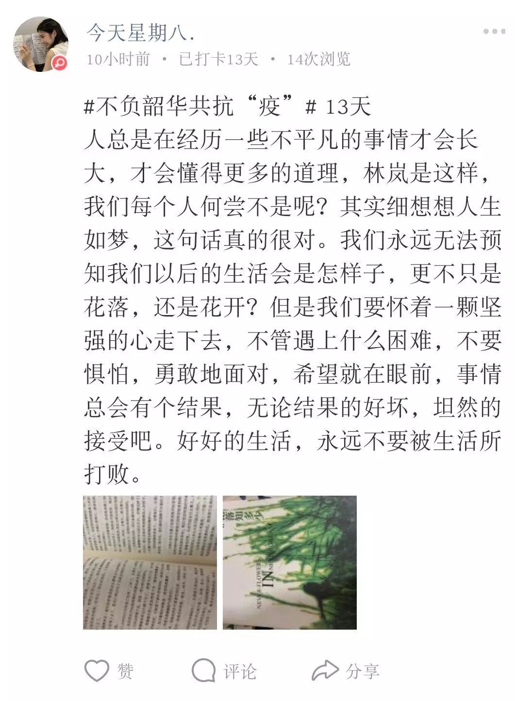 不负韶华,阅读打卡进行时!快叫上你的小伙伴一起来打卡吧!21天阅读打卡第二周已结束,最后一周我们不见不散!