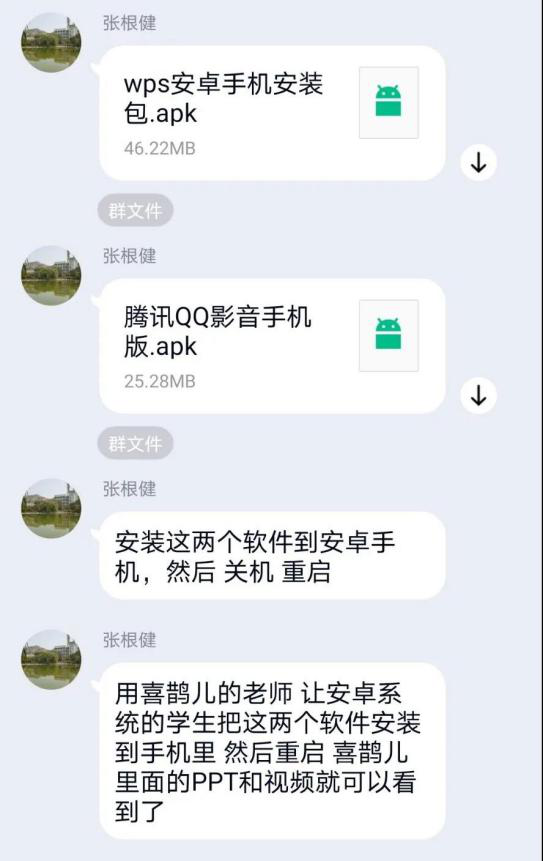 老师建立群聊向同学们下发通知、交代注意事项。结合专业实际,制定疫情防控期间教学组织方案。老师提前录制好教学课程,做出课件发送到喜鹊儿app供大家学习;认真选取线上教材,以网课形式授课;通过群聊或腾讯会议app直播授课等平台和方式稳妥开展,保证与线下教学质量实质等效。