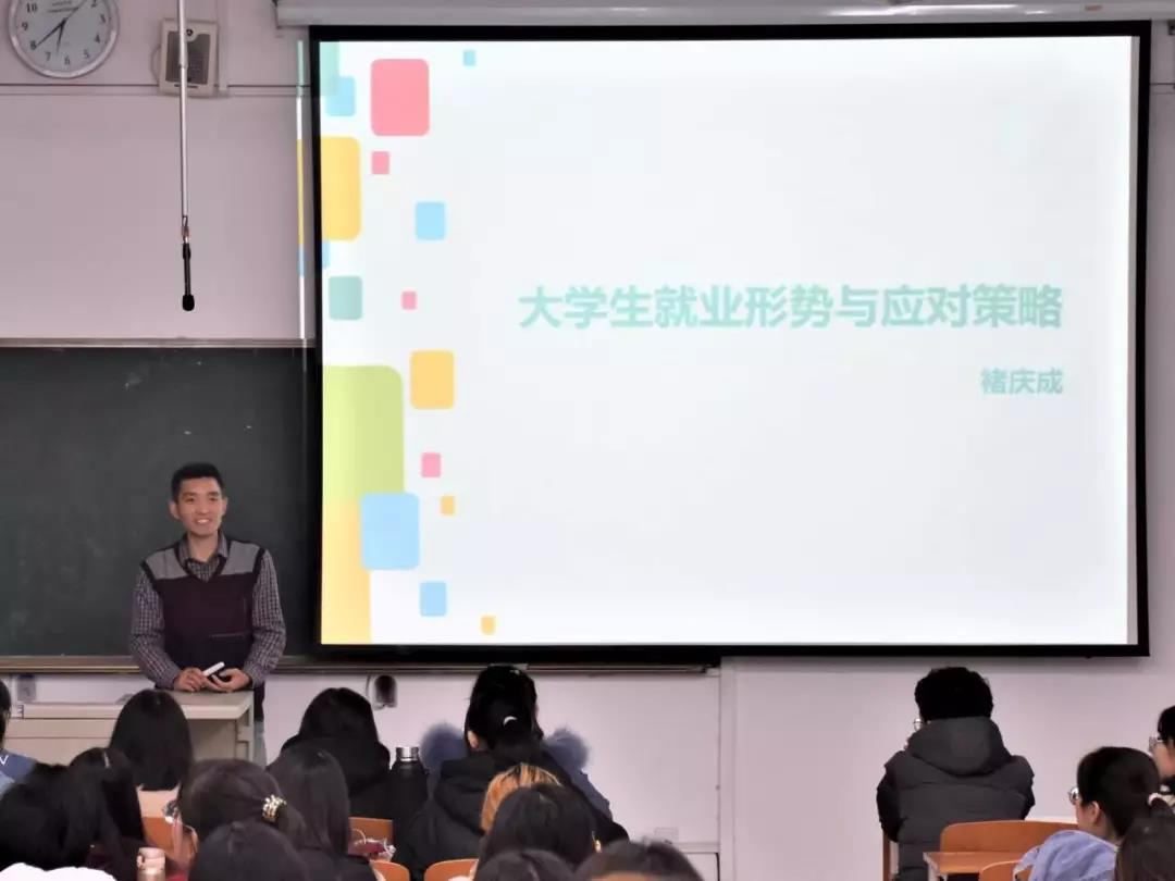 2019年11月21日,山东女子学院在博文楼201教室成功举办大学生就业指导服务活动讲座。本次活动由山东师范大学就业中心褚庆成老师担任主讲,部分学生到场参加,会场气氛活跃。