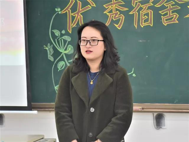 在主持人朱嘉奕简洁扼要的开场白之后,李绍妮老师上台讲话。她首先强调了宿舍在大学生活中的重要意义,以及舍友之间关系的重要性,并表示进行卫生标兵和优良学风宿舍评选活动可以让学生们充分地体会到宿舍的温馨和集体的力量,从而促进大学生综合素质的全面提高,希望同学们能够在之后的学习生活中利用好宿舍这个阵地,取得佳绩。