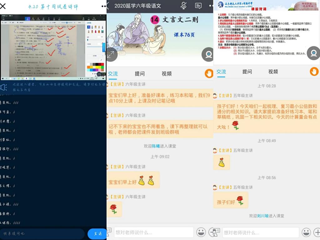 疫情期间,全国大中小学“停课不停学”,全面展开在线教学与指导,这给师范类专业的老师和学生带来了不小的挑战。在前期居家学习顺利进行的同时,小学教育专业的教法课老师开始探索“互联网教学+实践”的新教学模式。通过考察,山东女子学院教育学院签约实习基地——山东师范大学第二附属中学(小学部)在“停课不停学”方面敢于探索,做出了特色,得到家长和学生的一致认可。通过与学校领导交流,我们提出的新教学模式得到认可和大力支持,在4月20日,2018级小学教育本科专业56名学生正式进入小学部不同年级的“空中课堂”,随堂听课。
