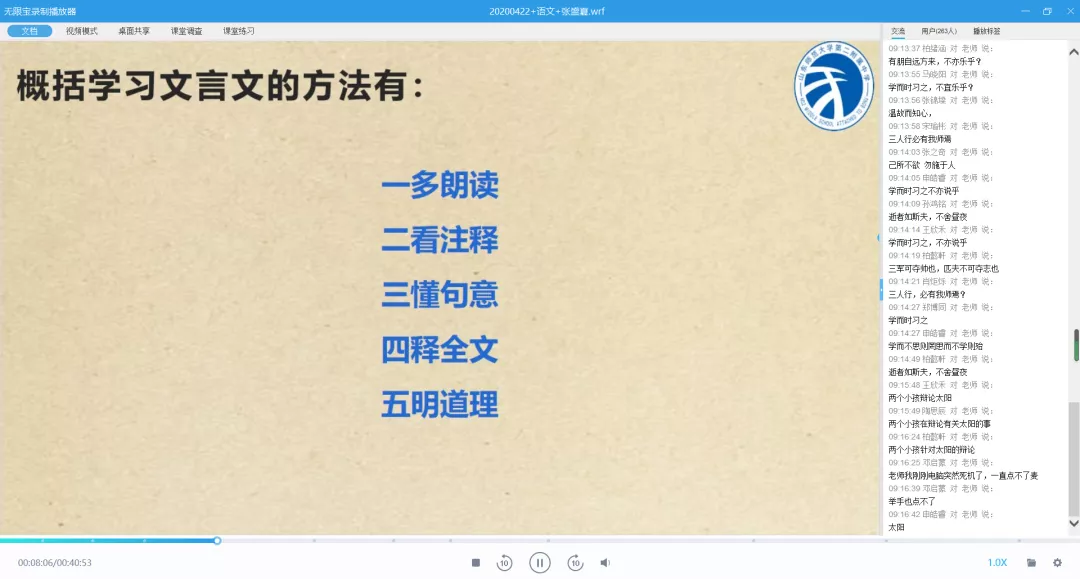 教育学院对于此次线上实践教学十分重视。教育学院院长董吉贺、副院长李高波、小学教育专业教研室主任高小焱老师多次在线上与小学教育专业学生进行交流,向学生们介绍了线上实践教学的开展方式和注意事项,要求每位学生积极配合指导老师的教学工作,从专业的角度出发,去发现、解决问题。学生也十分珍惜此次进“课堂”的机会,每天都会做好课堂观察记录和总结,课后能够与指导老师在线沟通,积极求教,解答疑问。