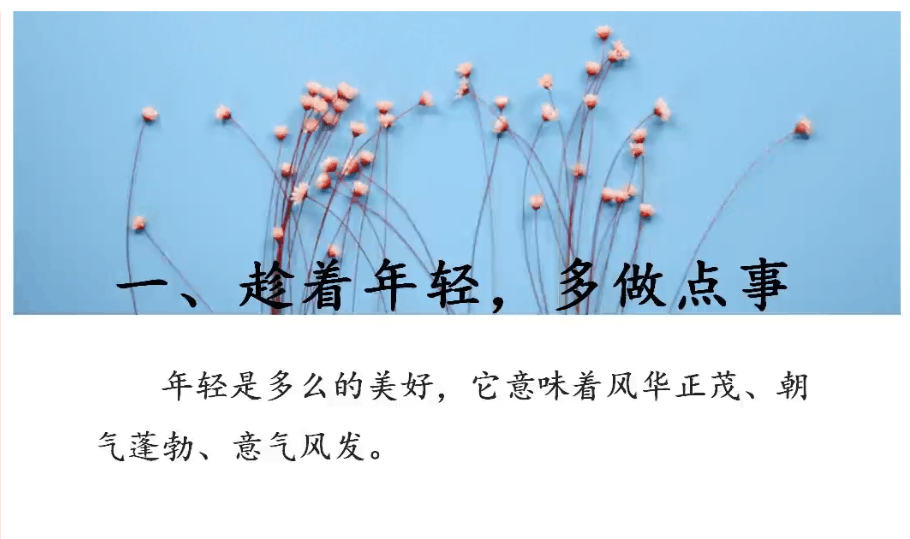 趁着自己还年轻,抓紧时间去努力去奋斗。杨雪老师自己就是做事干净利落、毫不拖泥带水的风格,所以杨雪老师结合自己亲身经历对小教同学提出三点要求:找准方向、抓住时机、注重思想方法,并对自己所提出的三点要求引例佐证,有理有据,使小教的学生们深刻的认识到时间的紧迫,唤醒小教同学的自我责任感、自主学习的能动性。
