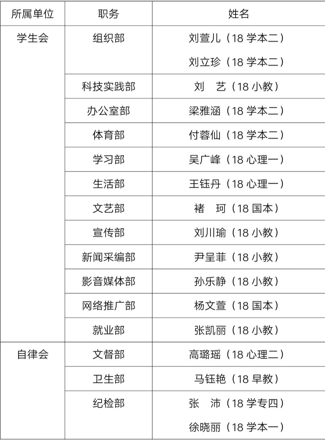 为树立青春榜样,总结良好经验,加强各部门的交流,激发学生干部的积极性,经教育学院学生会线上投票和综合评价,共推选出2019年教育学院学生会5个优秀部门、4位优秀主席团成员、17位优秀部长及84位优秀干事。