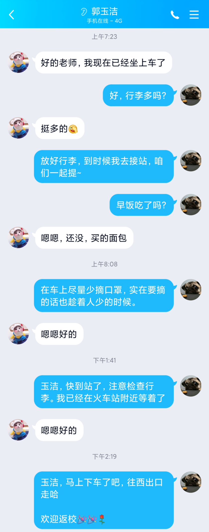 返校前,学院辅导员老师提前和我点对点联系,告知我返校相关流程和注意事项。还给我定制了“私人服务”,他们帮我收拾宿舍,晾晒被褥,让我倍感温暖。
