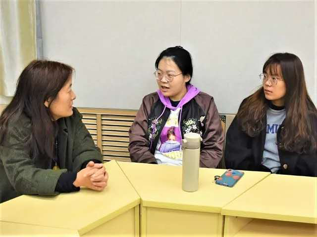 刘源老师建议大家提前了解所报考学校及专业的具体要求,及时关注信息和政策变化非常重要。合理分配时间,调整好学习和复习节奏。孔海燕老师提出:将自己的目标与自己的优势特点一一写下来,客观分析自己情况,确定今后目标,并坚持不懈的朝着这个目标而努力。目标一经确定,不要轻言放弃。相信并坚持,做最好的自己。同学们纷纷表示受益匪浅,通过与老师交流,消除了焦虑,增加了信心。