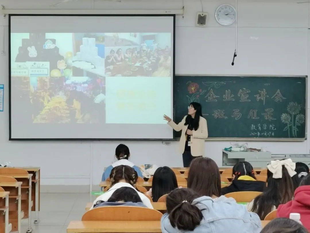 宣讲会开始,指导老师通过介绍斑马AI课的品牌力量及在疫情期间“稳就业,共担当”的品牌故事引入主题。而后,指导老师从斑马AI课辅导老师区别于传统“老师”的强互联网属性方面,详细地介绍了斑马AI教育机构在线辅导、家长沟通、社群运营和学习管理方面的特点。最后,指导老师介绍了他们的福利待遇和特色活动。宣讲会期间,老师与同学们积极互动,掌声不断。至此,宣讲会圆满结束。