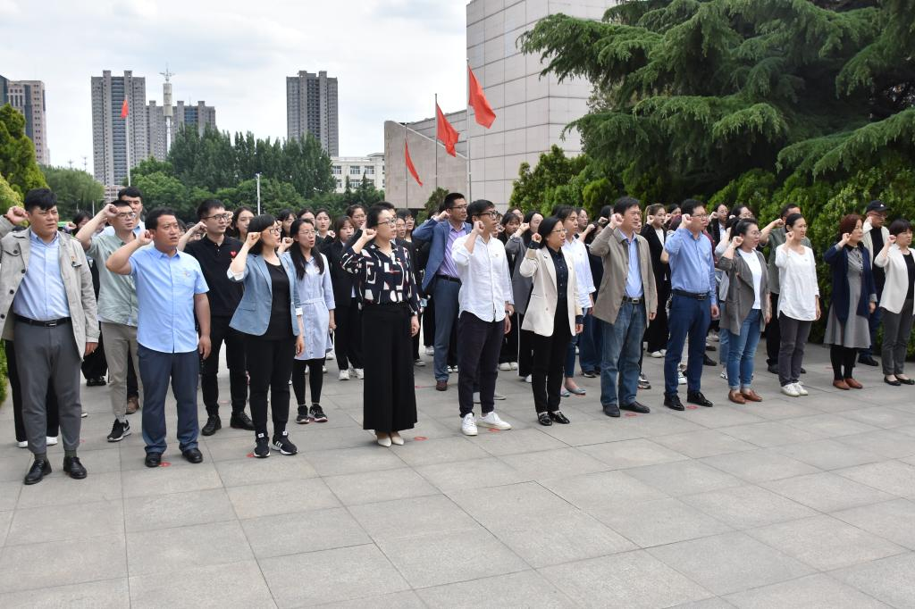 在革命纪念塔前,全体党员重温入党誓词,铿锵的誓言,让大家热血沸腾,仿佛重回当初加入党组织的那一刻,更加坚定了自己的理想信念。