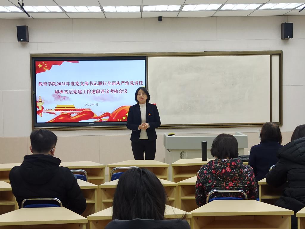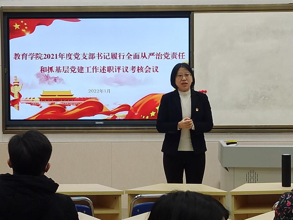 2022年1月13日,教育学院于博雅B201召开党支部书记履行全面从严治党责任和抓基层党建工作述职评议考核会。学校党委委员、党委统战部部长李君到会指导。学院党委书记崔江宁主持会议,教育学院全体教工党员出席会议。