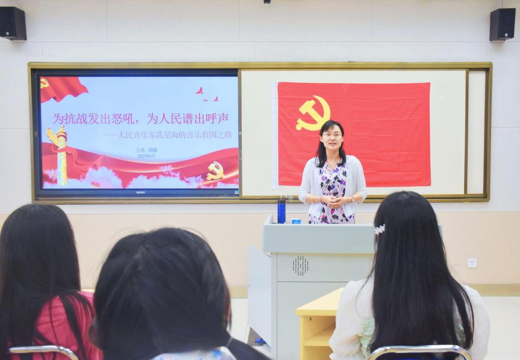 6月6日下午,教育学院党委副书记路敏在博雅楼B201教室以《“为抗战发出怒吼,为人民谱出呼声——人民音乐家冼星海的音乐救国之路》为题为部分学生党员、入党积极分子上党课。