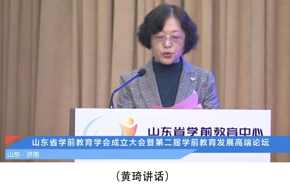 李光红在致辞中指出,今年是山东女子学院建校70周年,本次论坛的承办也是庆祝建校70周年重要系列活动之一。并就山东女子学院的发展历程、办学特色、学前教育育人理念、人才培养成效等向与会专家进行了介绍。她表示,山东省学前教育学会的成立是山东省学前教育发展过程中的一件大事,是广大学前教育工作者之家。相信通过山东省学前教育学会的成立以及本次论坛的成功举办,定能进一步推动山东省学前教育事业改革发展。承办此次论坛对于山东女子学院的发展具有重要的意义,希望山东省学前教育中心和山东省学前教育学会和与会专家继续支持山东女子学院的发展。之后,省民政厅社会组织管理局副局长姬升峰致辞,他表示,希望学会要充分发挥职能作用,突出专业性,加强交流与合作,积极开展改革发展研讨;强化学术性,进一步加强学前教育规律研究和保育教育理论创新实践;彰显服务性,主动为教育行政服务,有针对性地开展学术交流,积极探索创新教育模式,为提高教师专业发展水平和科学保教能力助力赋能。随后,中国学前教育研究会理事长侯莉敏致辞,他代表中国学前教育研究会对山东省学前教育学会的成立表示祝贺。新当选的首任省学前教育学会会长黄琦讲话。