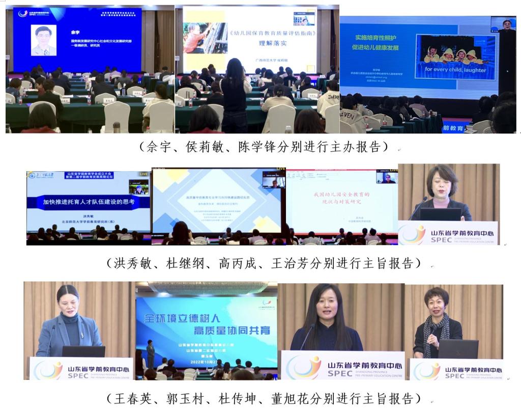 与会专家围绕主题进行了深入的交流和研讨。专家主旨报告分为三个环节,前三位专家主旨报告由山东女子学院副校长刘恩允主持。分别是国务院发展研究中心社会和文化发展研究部一级调研员佘宇,广西师范大学教育学部教授、博士生导师、中国学前教育研究会理事长侯莉敏,联合国儿基会驻中国办事处儿童早期发展专家陈学锋进行主旨报告。其主题分别是《增强多元化学前教育服务供给能力》、《<幼儿园保育教育质量评估指南>理解落实》、《实施培育性照护 促进幼儿健康发展》。概括而言,这三位专家认为,在中华民族伟大复兴战略全局和世界百年未有之大变局下,适应新发展格局,关注如何在新的时代背景下满足学前教育发展要求的问题。学前教育研究需要为未来的学前教育提供发展全局的战略方针和发展路径的设计构想,为学前教育体系发展提供有价值的政策引领、提升保育质量和高质量的照护。