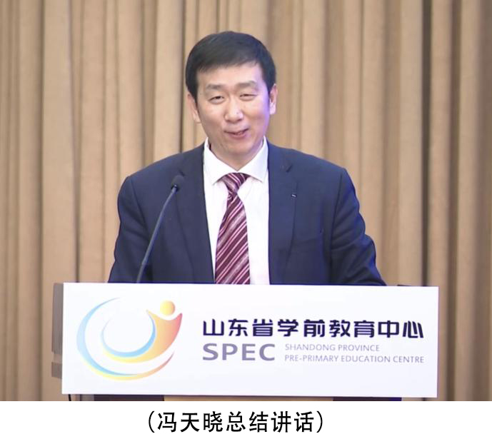 大会和论坛的最后,山东省学前教育中心党委书记、主任冯天晓对本次大会和论坛进行了全面总结。本次论坛研讨了在新的时代背景下,学前教育的改革和发展所面临的新机遇、新挑战、新举措。在党的二十大报告再次强调“幼有所育”的发展格局下,学前教育应以新发展理念为指导,着力解决学前教育领域现存问题,提升学前教育整体水平,在保证学前教育规模的基础上,实现全方位、高质量发展。与会专家的报告既有对过去学前教育建设的经验总结,又有对未来学前教育发展的战略前瞻;既有对国内学前教育的关注,也有从国际视角对其他国家学前教育经验和发展前沿的总结。与会专家的主旨报告结合学前教育理论和实践两方面,通过逻辑推导和实证分析,为我国学前教育高质量发展提供了建设性意见。