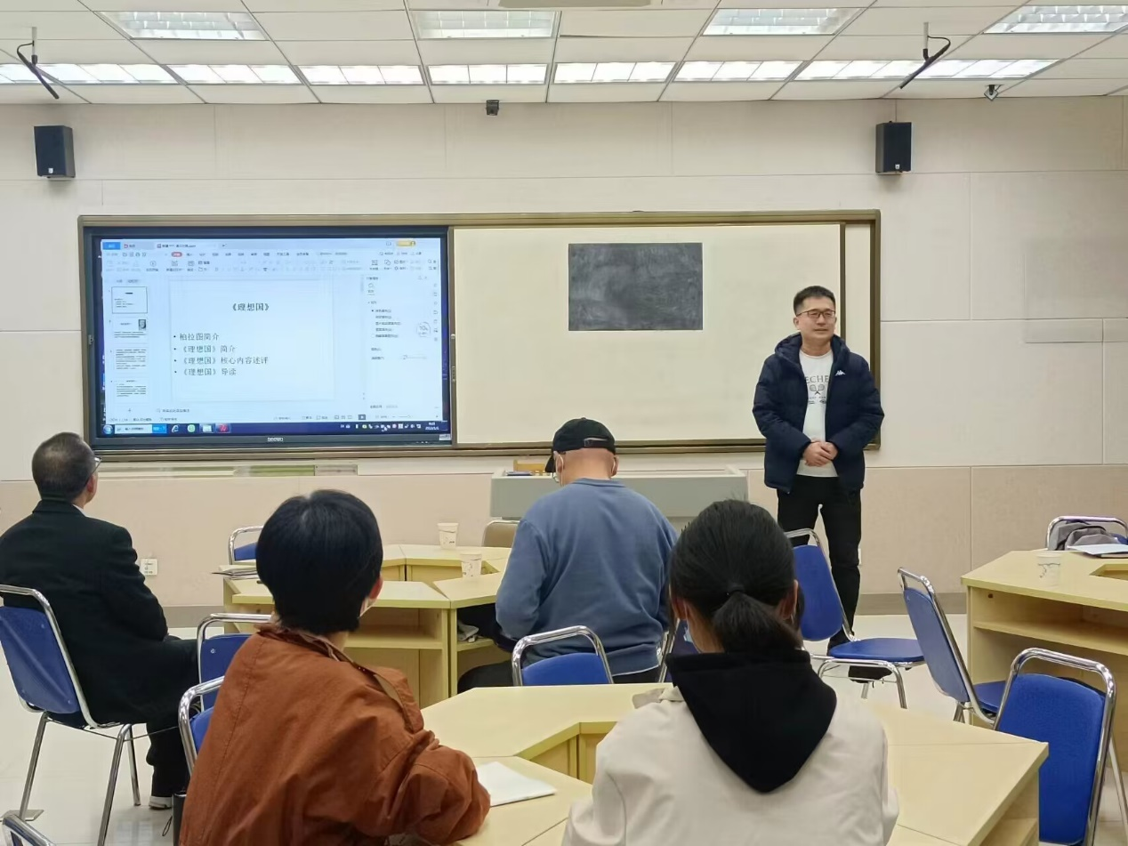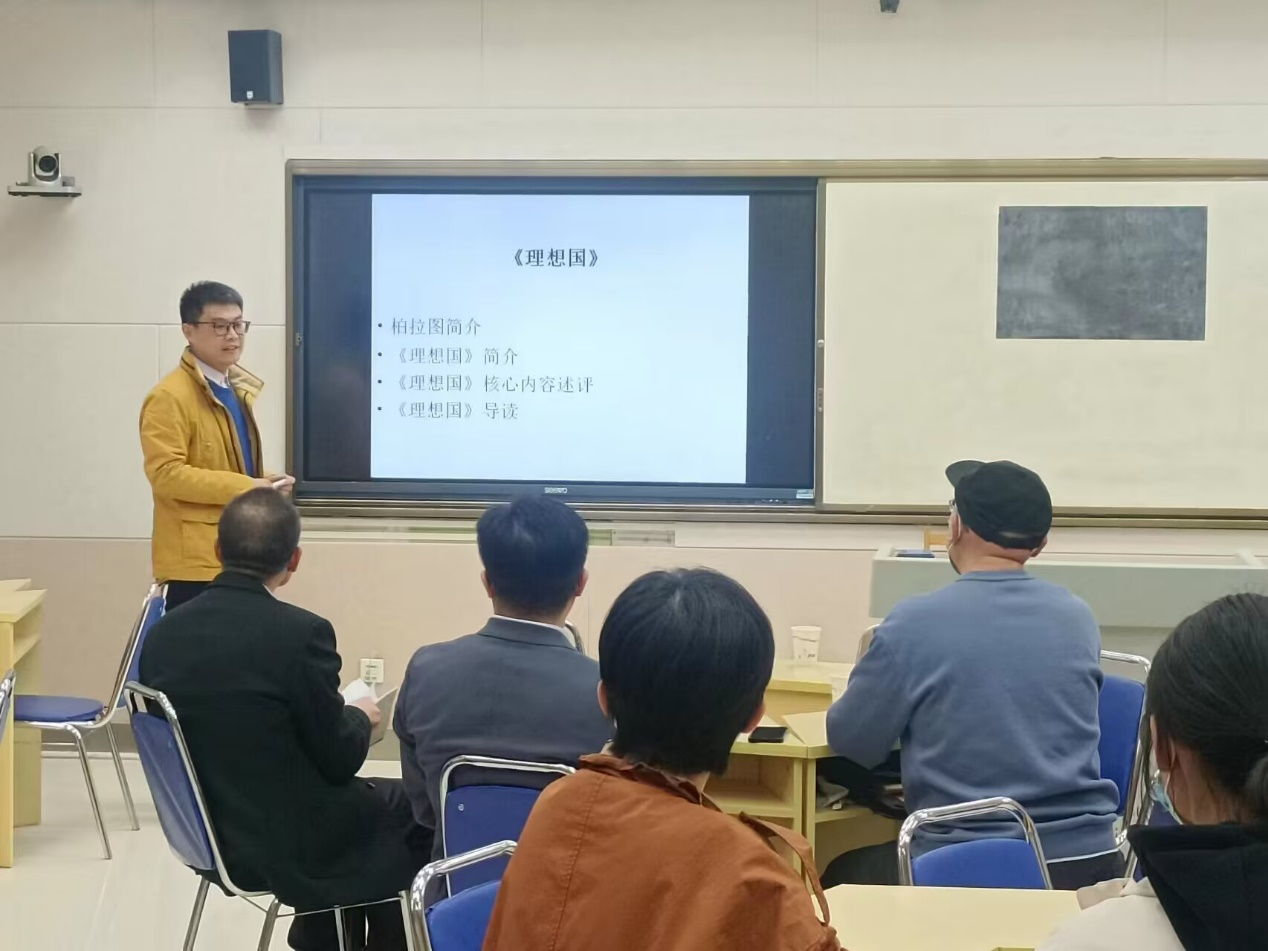 李中良博士首先向大家总体概括了本次会议的主要内容,接着顺随大家对柏拉图及理想国的大体认识,从柏拉图简介、事迹,理想国的简介及其核心内容三方面入手展开论述。首先,李中良博士讲述了柏拉图的身世,贵族政治思想及其一生著述,点明了柏拉图当时思想之创新。其次,李中良博士从成书背景、对话集、综合著作、评价、关于著作以及结构这七方面对理想国进行介绍。点明了理想国在西方文化史上的地位,西方哲学和各门社会科学,几乎都可以在“理想国”中找到一些最初的经典表达形式,通过了解各卷主要内容分析了各卷主题和对话纲要。再次,李中良博士围绕核心内容说明了六方面主要思想:一是理念论,“理念”是独立的,不能用感官来感知的、超越于个别事物之外并且作为其存在之根据的实在。二是理念世界,并从“知识”的世界和“意见”的世界这两方面进行阐述。三是回忆说,采用举例的方法对此展开论述,认为理性是灵魂中最高的部分,四是理想国的三类人,总体分为卫国者、士兵和普通人并阐述三类人各自任务分工。五是理想国中的教育,在此说明了各个年龄段的首要任务。六是灵魂转向,相比于认识结构和存在结构点明了对现在教育的启示。最后将柏拉图思想总结为形而上学,政治学,伦理学,教育学这四部分在这个过程中,李中良博士借助多个例子进行分析说明,深入诠释了柏拉图思想及理想国内容。