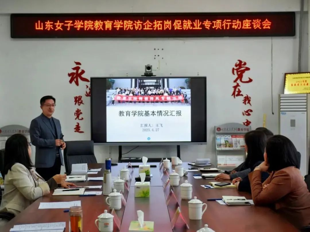 为进一步落实党中央、国务院关于高校毕业生“稳就业”“保就业”的决策部署,精准对接单位用人需求,确保毕业生更高质量就业,4月27日下午,山东女子学院教育学院邀请山东银座英才幼儿园(银座幼教集团)、济南童林堡幼儿园、山东省当代教育研究院、山东纽扣远程教育咨询集团有限公司、济南市婴幼儿托育服务行业协会五家用人单位来校座谈。山东女子学院副校长刘恩允、教育学院党委班子成员及部分教师参加,会议由教育学院党委书记崔江宁主持。