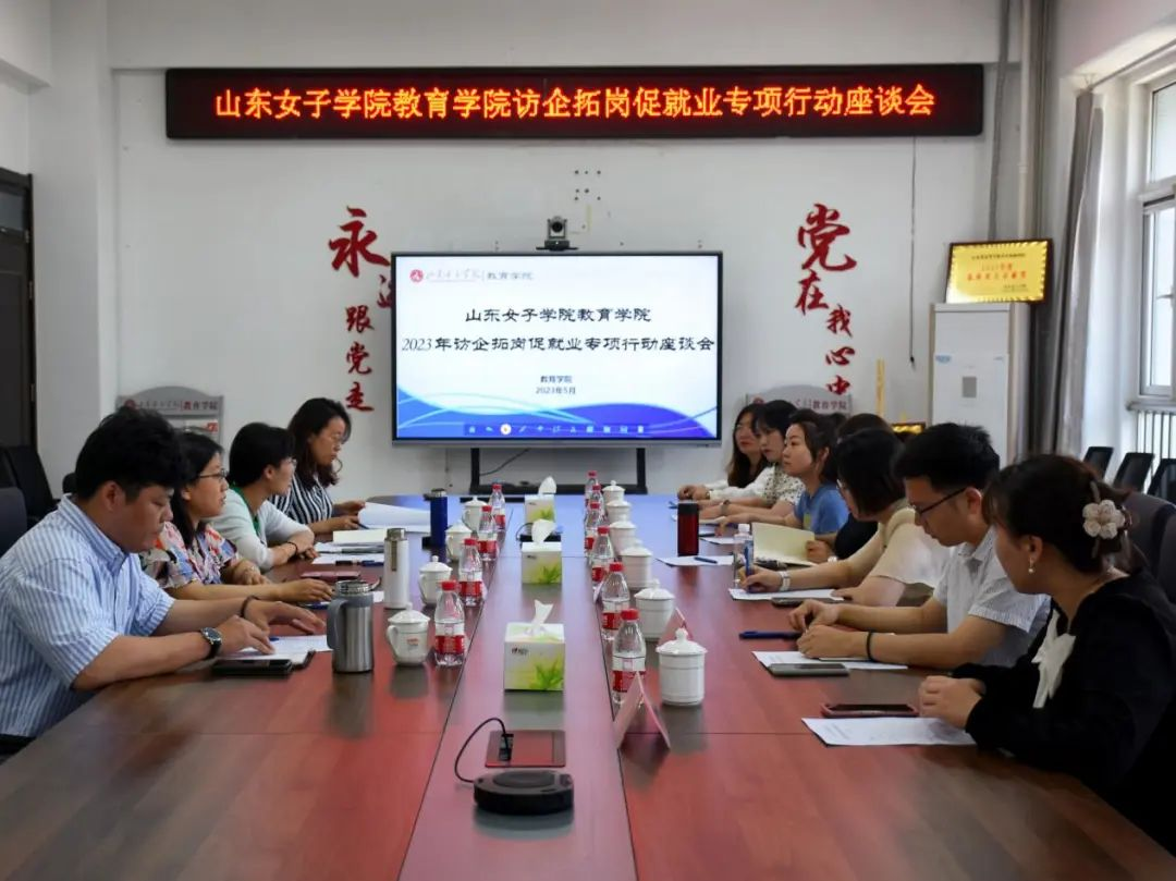 为深入开展学习贯彻习近平新时代中国特色社会主义思想主题教育,加快落实党中央、国务院对高校毕业生就业创业工作的决策部署,扎实推动就业工作走深走实,5月16日上午,教育学院党委书记崔江宁、党委副书记路敏、副院长刘源与坤育儿童能力提升中心、济南爱而知教育咨询有限公司、济南市长清区爱德堡幼儿园、潍坊市潍城区尚德幼儿园、山东大众私募基金管理有限公司等五家用人单位代表开展座谈。会议由教育学院党委副书记路敏主持。