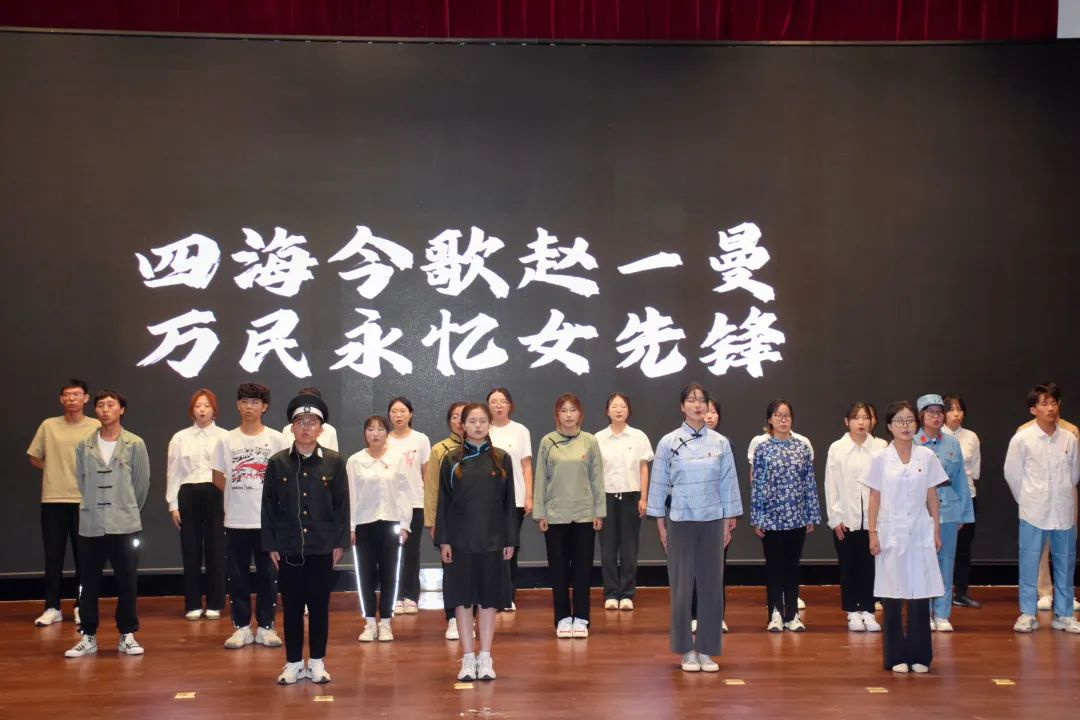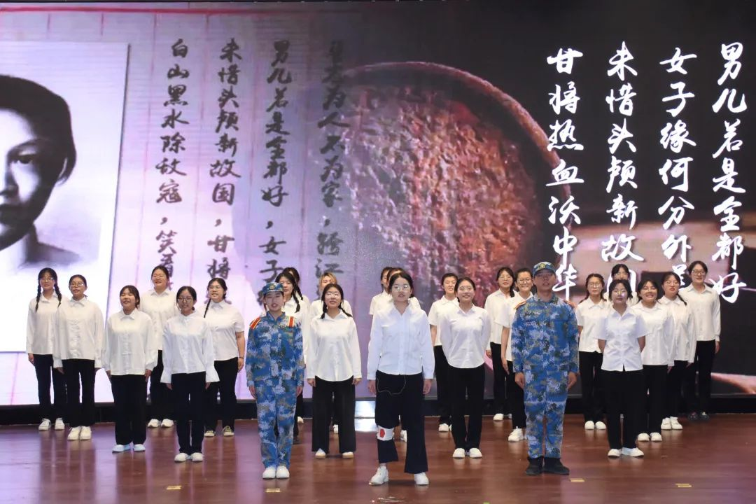 教育学院21级小学教育等5个团支部带来的《甘将热血沃中华》《英雄风骨铭中华》《秋叶等得到花开》《致敬巾帼英雄秋瑾》《不负巾帼志,热血沃中华》,致敬民族抗日女英雄赵一曼与秋瑾。在如火如荼的战场上,赵一曼威震敌胆,是“白山黑水”的民族魂;“身不得男儿烈,心却比男儿烈”,秋瑾不愿“与世浮沉,碌碌而终”,她短暂的一生,光彩炽烈!