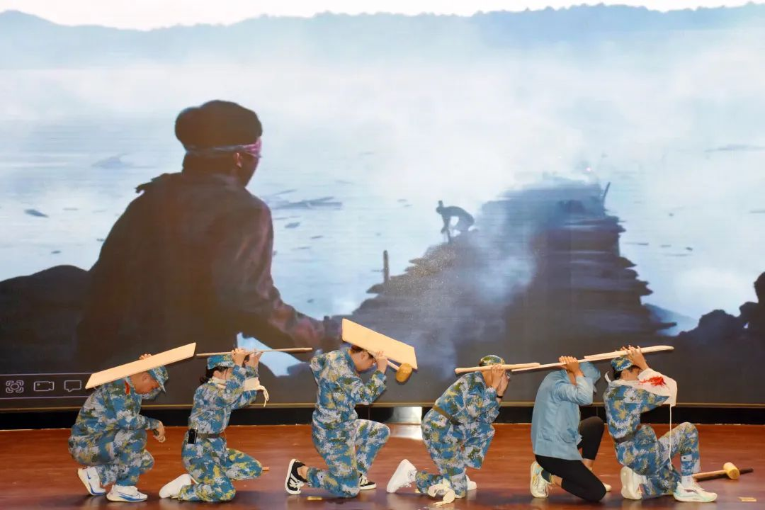 教育学院学生会功能型团支部带来的《铁骨铮铮化英魂》,致敬志愿军战士张振智,他与伙伴们冒死用自己的生命撑起了桥梁,保障了金刚川上的水路通道,为抗美援朝战争的胜利做出巨大的贡献。