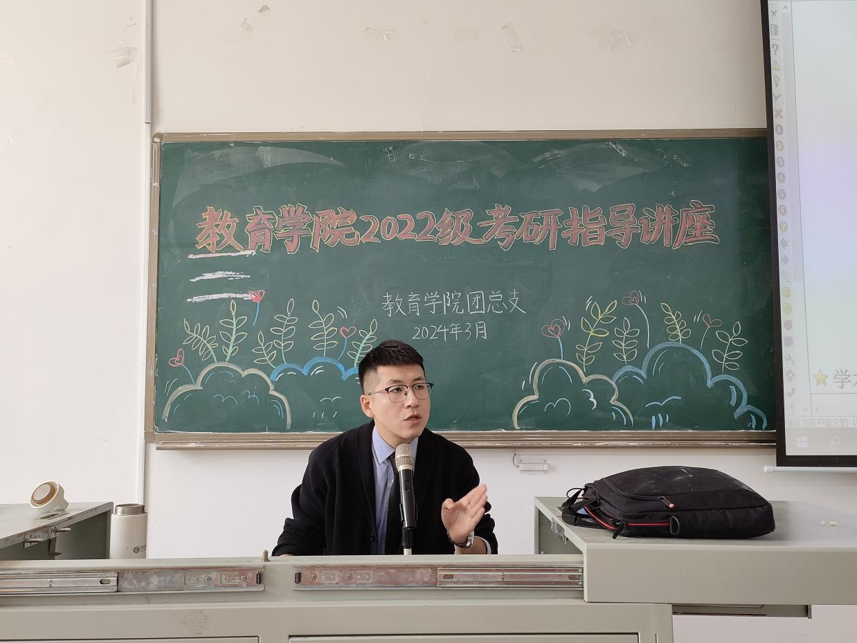 为帮助我院学生增强考研意识、规划考研之路,3月28日,教育学院于博文楼101举办2022级考研指导讲座。本次活动由高联教育胡强老师主讲,百余名有考研意向的学生参加。