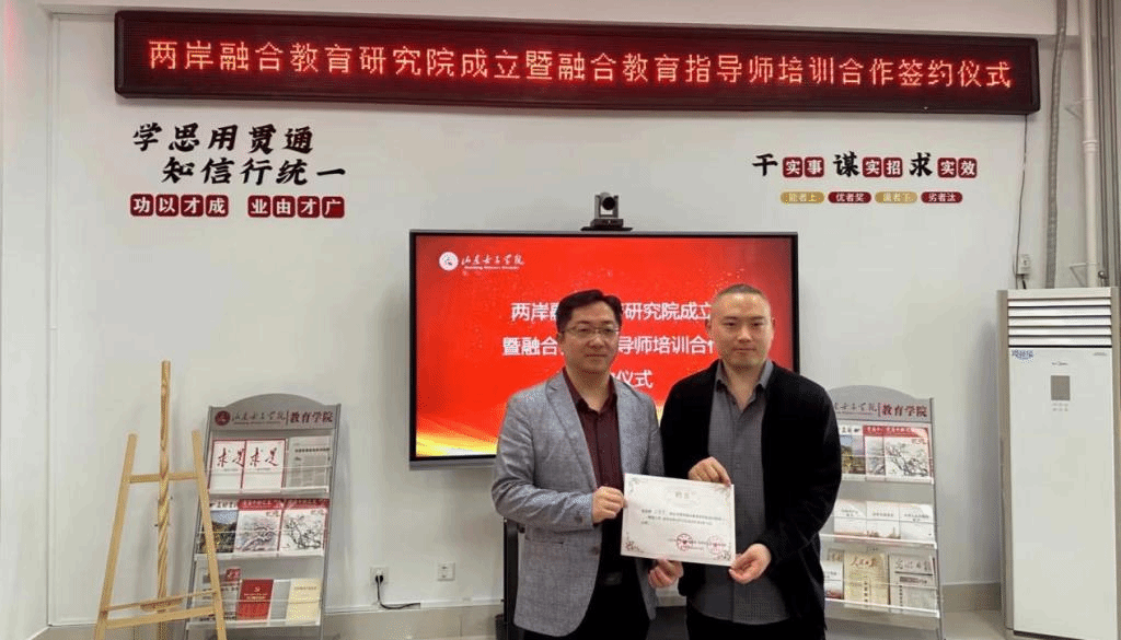 仪式上,王飞表示山东女子学院教育学院一直致力于学前教育、小学教育和应用心理学的人才培养、科学研究和社会服务工作,在专业设置与学科建设上具有突出优势。学前教育专业在2020年度被评为国家一流本科专业,也是教育部卓越幼儿园教师培养计划改革主要依托专业,将为双方合作提供有力支持。学院项目负责人孔海燕教授表示,学校2021年获批的山东省青年科技创新团队“幼儿问题行为创新团队”和2023年度获批的国家社会科学基金教育学一般项目“关怀伦理视域下幼儿问题行为的形成机制及干预研究”,均可以为两岸融合教育指导师的课程资源开发与推广应用提供优质资源。
