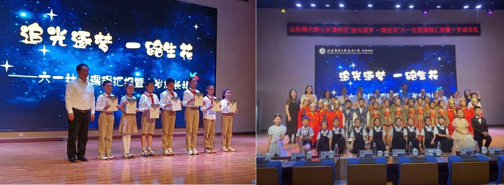 王录平、程伟两位老师走进山东师范大学附属小学(长清区)进行慰问,恰逢校区“追光逐梦 一路生花”六一社团课程汇报暨十岁成长礼,两位老师观看了孩子们的六一汇报,感受了孩子们天真无邪,体会了学校良好的氛围。随后与学校领导交流实习生们的在校情况,给实习学校的孩子们送上了节日的祝愿,并对学校表示感谢,最后合影留念。