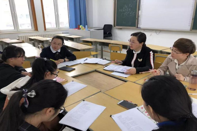 小学教育专业教研室主任高小焱老师与山东师范大学第二附属中学(小学部)老师研讨《诵读》校本课程