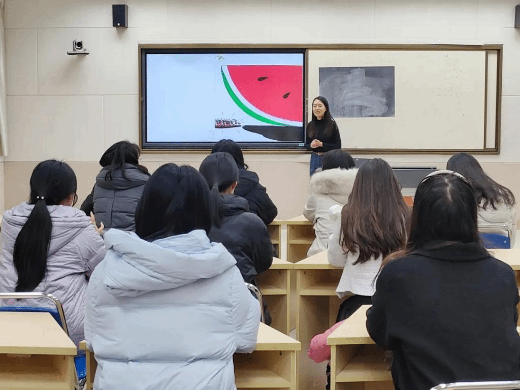 模拟面试包括自我介绍、讲课、答辩三个环节。“面试官”们针对每位同学的表现,做了精辟细致的点评,既对同学们的优点不吝赞美,也一针见血地指出了其中的不足,同时还给出了针对性的建议。路书记建议,自我介绍部分可以加入学生在班级、学生会和社团的任职,并简要介绍一下取得的成绩,突显组织管理能力。课程的导入部分要合理且富有特色,课程设计要逻辑清晰,突出讲课重点,并将音乐、美术、肢体语言等多种元素充分融入到教学中,充分吸引孩子们参与到教学活动中。老师们将用人单位和毕业生对应聘成功要素的不同看法进行对比,强调毕业生应该着重提升个人合作能力、创新意识、表达沟通能力和组织领导力等。