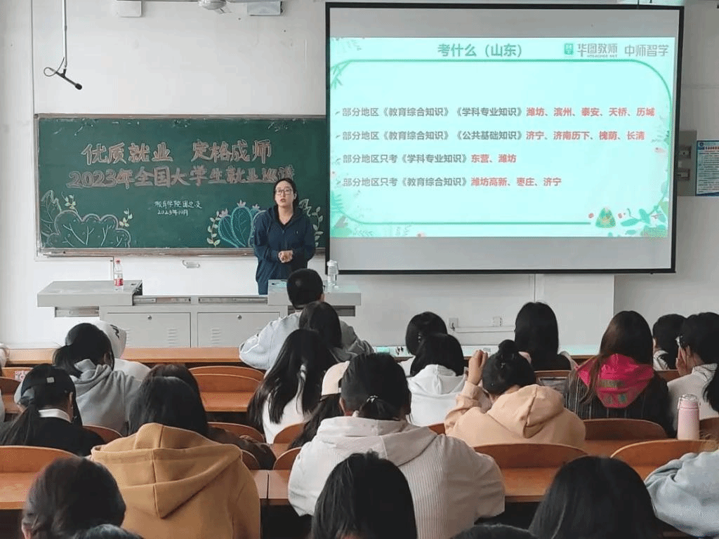 为培养学生的职业规划意识,拓展求职视野,解决就业面临的实际问题,10月26日下午,山东女子学院教育学院邀请华图教师董婷在博文楼108进行“优质就业,定格成师”大学生就业巡讲,教育学院一百余名学生参加本次活动。