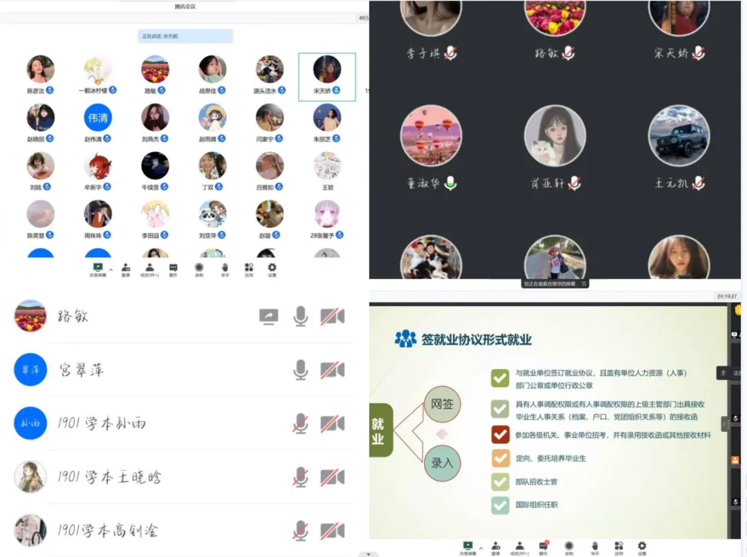 最后,教育学院辅导员宋天娇、董淑华、宫翠萍就毕业生党团关系转递、就业信息获取途径、就业材料填写、档案管理等相关工作进行系统说明,为毕业生做好就业相关服务。