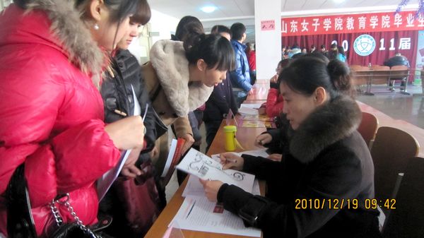 2010年12月19日,教育学院2011届毕业生双选会在学校普教楼隆重召开。出席本次双选会的有山东女子学院党委副书记宿建沛、山东女子学院副院长王淑霞、招生就业处处长刘明、学生处处长李君、教育学院党总支书记田莉春、教育学院院长朱海琳、教育学院副院长王丽娟、刘爱慈及八十余家用人单位的代表。 本次“双选会”得到了学校领导的高度重视和大力支持,教育学院师生通力合作,精心组织。会议在朱海琳院长热情洋溢的致辞中拉开了序幕,她就学院与用人单位的合作关系、毕业生的培养情况发表了精彩讲话。党总支书记田莉春介绍了我院2011届学前教育、儿童英语教育、音乐教育、舞蹈教育四个专业400多名毕业生的情况,肯定了他们是一群政治觉悟高、职业道德好、基础知识扎实、实践能力较强、综合素质较高、注重团队精神的合格大学生。招生就业处处长刘明、学生处处长李君发表讲话,引导毕业生们正确面对职业选择,并祝愿毕业生找到合适的工作岗位,祝愿各用人单位寻觅到合适的人才。教育学院副院长刘爱慈主持会议,宣布山东女子学院教育学院2011届毕业生双选会正式开幕。 双选会开始后,毕业生们热情高涨,纷纷到自己心仪的单位展台前投递简历并现场面试,会场内气氛热烈,秩序井然,有多名同学当场达成了就业协议。山东女子学院党委副书记宿建沛、副院长王淑霞亲临教育学院双选会现场指导工作,对于我院的毕业生就业工作给予了充分肯定。 此次“双选会”的召开不仅增进了用人单位和学校之间的相互了解,更重要的是拓宽了毕业生的就业渠道,为教育类毕业生的充分就业奠定了坚实的基础。