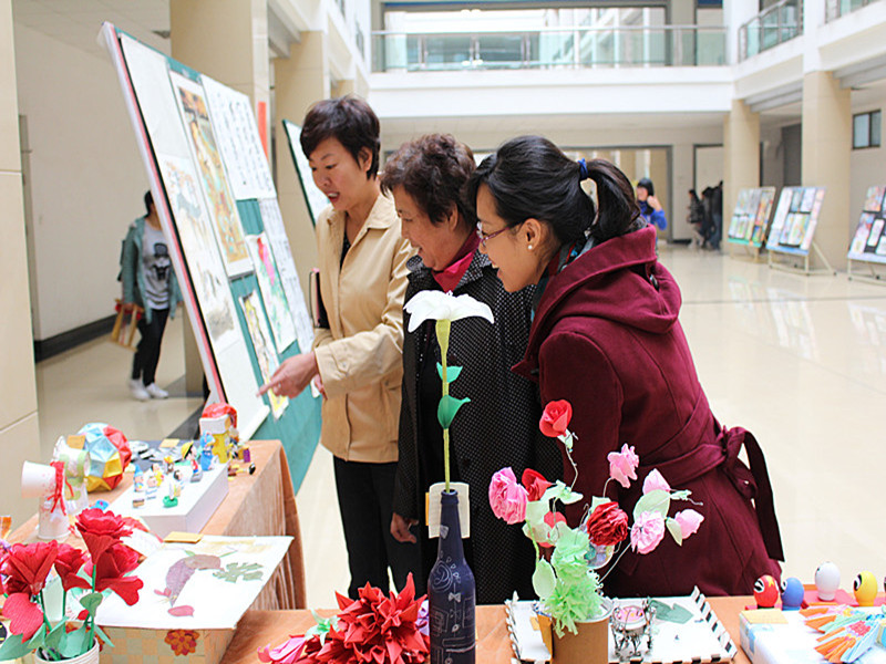 由校团委、教育学院团总支举办的“浓墨青春,圆梦女院”山东女子学院第四届美工展于近日在二号教学楼一楼大厅展出。 山东女子学院美工展是面向我校大学生征稿的大型综合性美工展,每年举办一次。美工展为我校学生搭建一个美术交流、展示、服务平台,旨在展示当代女大学生心灵手巧和环保理念,同时体现大学生美术创作、课堂学习、艺术创新水平,进一步增强和提升我校大学生的综合竞争力,推动我校学生活动的良性发展。此次美工展共收到9个学院的作品839件,展出绘画类、手工类、书法类作品以及课堂习作一百余件作品。本届美工展共评出一等奖37件(组),二等奖52件(组),三等奖64件(组),优秀奖56件(组)。同时,根据投稿件数及作品质量,共评出优秀组织单位四个:会计学院、外国语学院、信息技术学院、艺术学院,优秀班级三个:12学前专科4班、12学前本科2班、12学前专科3班。展出时间为10月29日至11月1日。展出期间,校党委副书记宿建沛、校团委书记李丽华专程前来观看展览,教育学院团总支书记陪同参观。宿书记仔细观看展览的每一幅作品,高度评价参展作品创意新颖、寓意深刻、并指出,此次比赛与专业结合,将展览变成课堂,体现了提高学生自身的专业素质和艺术修养,同时废物利用、绿色环保,体现女大学生心灵手巧的特质。 本次大赛旨在弘扬中华传统文化,推进大学生艺术素质教育,丰富大学校园文化生活,是一次层次较高、艺术种类较多、且参与度较广的比赛,是我校大学生艺术素养的一次集体展示。通过此次活动,丰富了同学们的课余生活,展示了青春的美好风采,营造了浓郁的艺术氛围,反映了我校的教育理念和教育成果,使全校学生综合素质进一步提高,使我校精神文明创建又上了新台阶。