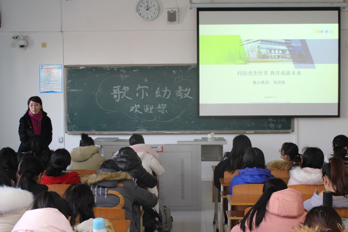 2018年12月13日14:00,教育学院于博学楼316召开歌尔教育单位就业宣讲会。歌尔集团雅颂幼儿园执行园长刘长辉、歌尔幼儿园总园长郇爱君、优秀幼儿教师孙梦及18级学生代表参与此次宣讲会。