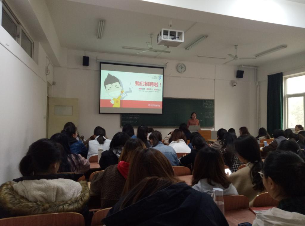 宣讲会依始,主讲人老师向同学们详细介绍了昂立教育集团的发展情况和教学状况。随后,昂立教育的老师介绍了昂立教育人员的组成,着重介绍了涉及的课程,并仔细阐述了昂立教育集团的应聘要求。接着老师又为大家介绍了昂立教育为实习生搭建的就业平台,充分展示了昂立教育对实习权益的保护和对实现学校、学生、企业三方共赢的用心。而另一位 老师则对同学们关心的岗位、薪资等问题作出了详细的解答。至此,宣讲会圆满结束。