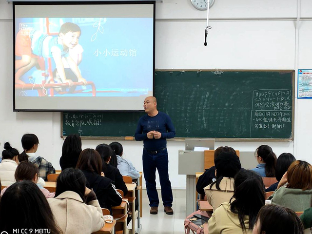 宣讲会以播放小小运动馆的宣传短片开始,简单介绍了各位家长选择小小运动馆的原因以及孩子在小小运动馆中的成长变化。有家长表示,自己孩子在学习完小小运动馆的课程之后,身体素质有所提高,对体育运动也有了一定的热情,看到孩子的变化,家长们表示十分欣慰。之后,老师便讲述他与小小运动馆的故事,并从“品牌故事”、“课程与活动”、“奥林匹克标准”和“为什么选择小小运动馆”四个方面详细介绍,让同学们对小小运动馆有了一个较为全面的认识。紧接着,老师分别介绍了小小运动馆的发展历程及获得的多项荣誉、职业发展和不同年龄阶段的孩子开展的课程、规避安全风险方面的问题以及指导师的成长规划和对不同层级指导师的要求、培训、考核。同学们都惊叹于小小运动馆所取得的荣誉,并且对于其教育方法和教学课程都表现出了十分浓厚的兴趣。在听完老师对指导师的要求之后,同学们了解到,小小运动馆对于指导师的要求非常严格,并且针对指导师的个人能力划分了不同的等级,要求他们定期参加培训以及考核,如此优秀的导师制度让在场的同学们连连赞叹。至此,宣讲会圆满结束,老师的精彩介绍赢得了在场观众的一阵阵掌声。