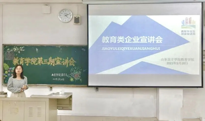 为提升学生对早教行业人才需求的认识,促进教育学院学生优质就业,山东女子学院教育学院开展“就业促进周”系列活动,本期宣讲会由摇篮兔线上早教机构负责人王小倩主讲。