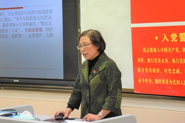 李君书记首先提出了“中国共产党人的初心和使命是什么?学生、教职工党员的初心和使命是什么”的问题,她指出,教工党员的初心使命是立德树人,为党育人,为国育才,培养一代又一代为中国特色社会主义终身奋斗的有用人才。青年学生的初心使命则是听党话、跟党走,增强综合素质、加强品德修养,努力成为能够担当民族复兴大任的好人、好才。