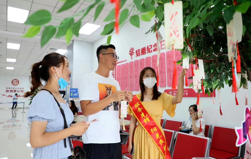 在区政务服务大厅婚姻登记处的志愿服务中,我的工作是给群众提供引导服务,本次的实践活动也让我深刻体会到了婚姻登记流程办事效率的进步。刚开始工作时,我不太会主动和人交流,也不会主动询问别人是否需要帮助,总是站在一旁仔细观察,学习其他工作人员的操作。但是随着志愿服务的时间日益增长,我的工作水平也在日渐提高。我接触到了形形色色来咨询的人,业务能力也随之变得越来越强,能积极的向人们询问需要的业务类型,是否需要帮助他们在大厅取号预约,并对他们的问题进行简单的答疑。我深刻认识到作为志愿者,不仅要主动靠前服务,更要善于沟通,作为共产党员,要始终对群众保持热忱之心,时刻紧绷思想之弦,坚决筑牢责任之堤,时刻保持最饱满的工作热情。
