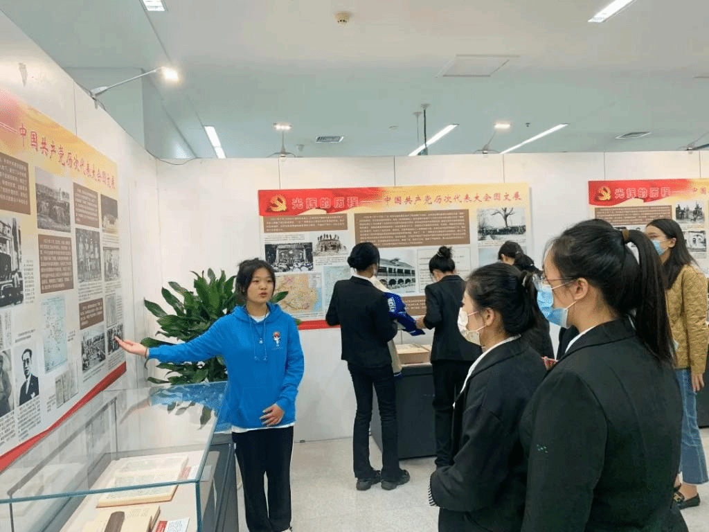 在“中国共产党历次全国代表大会馆藏红色文献图文展”现场,解说员从“人民有信仰,民族有希望”出发,给师生带来了一堂生动的党史教育课程。通过参观党员生平事迹展览、瞻仰伟人画像、重温入团誓词、阅读党史书籍等系列活动,一幅幅生动的图片,一件件珍贵的文物,一幕幕详尽的记录,都仿佛有了生命一般,让学生们真切地感受到先烈们坚定的革命理想信念和大无畏的奋斗牺牲精神,深刻认识到中国特色社会主义来之不易。