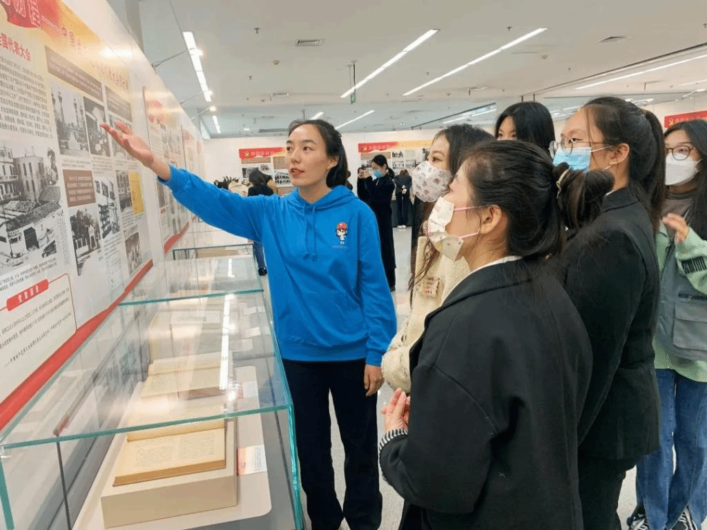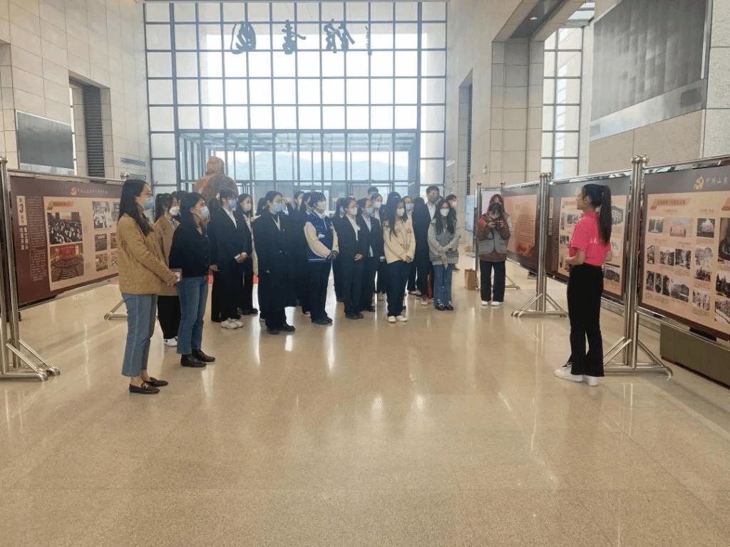 此次活动重点参观了山东师范大学长清校区图书馆内的“中共山东百年历史图片展” 和“中国共产党历次代表大会馆藏红色文献图文展”。