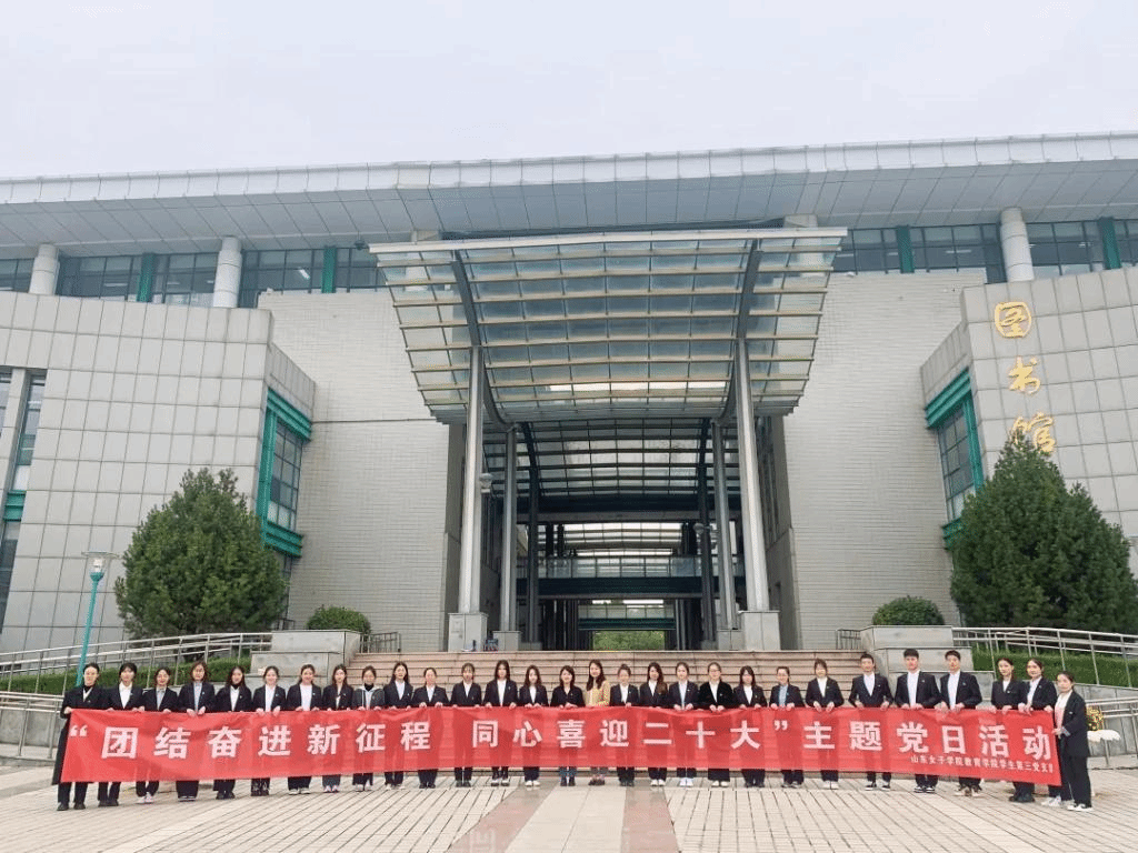 为进一步提升学生党员的使命意识和担当情怀,迎接党的二十大胜利召开,2022年10月6日下午,山东女子学院教育学院学生第三党支部赴山东师范大学长清校区交流学习,开展“团结奋进新征程,同心喜迎二十大”主题党日活动。