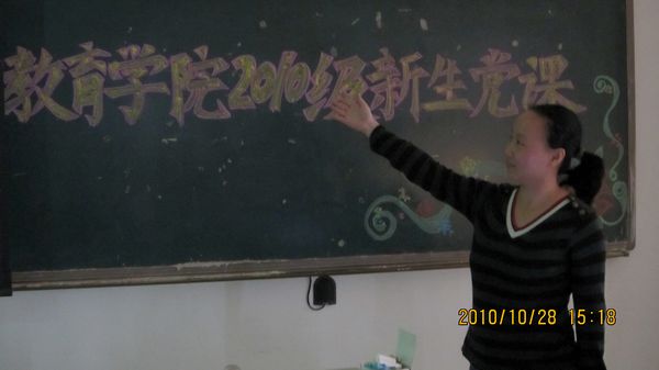 | 为了加强新生的党政教育工作,贯彻中国共产党的先进思想,加深新同学对中国共产党的认识与理解,我院于2010年10月28日开展了“教育学院2010级新生党课”教学活动。 此次活动由教育学院学生党支部书记张天乐老师主持。活动一开始,场内响起《国际歌》的旋律,全场起立,气氛庄重而严肃。活动中,老师向同学们介绍了中国共产党的基本思想、目标、宗旨和优良作风等基本知识。随后,同学们怀着对党的无比敬佩的心情观看了《献给中国共产党成立八十五周年》短片。该片展现了在中国曲折的近代史中,中国共产党的出现给饱经苦难的百姓以希望。星火燎原,新中国在28声礼炮声中成立。站起来的中国人民在党的领导下,开始了建设社会主义强国的新征程,共产党员的奋斗史深深地感染了每一个同学。老师随后向同学们介绍了申请入党的条件和入党程序,大家认真记录了如何成为这先进集体中的一员。最后,同学们满怀热情的完成了这次教学活动。 此次活动,宣传了党的路线方针,充分发挥了党的先锋模范作用,激发了新生对中国共产党的热爱之情与敬佩之情,使同学们进一步明确了入党目标,加深了同学们的使命感与责任感。加强党性教育对提高我院学生素质强化党政观念具有重要意义,相信通过开展这种活动,定能使当代大大学生感受到党的伟大精神,贯彻党的方针,为发展共产主义事业做出最大的贡献!