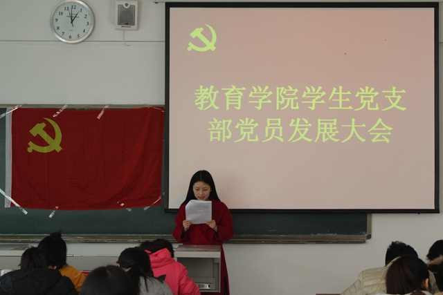 2016年12月1日中午,教育学院学生党支部于博学楼213隆重举行了接收预备党员支部发展大会。教育学院的学生党支部全体成员参加了此次会议。