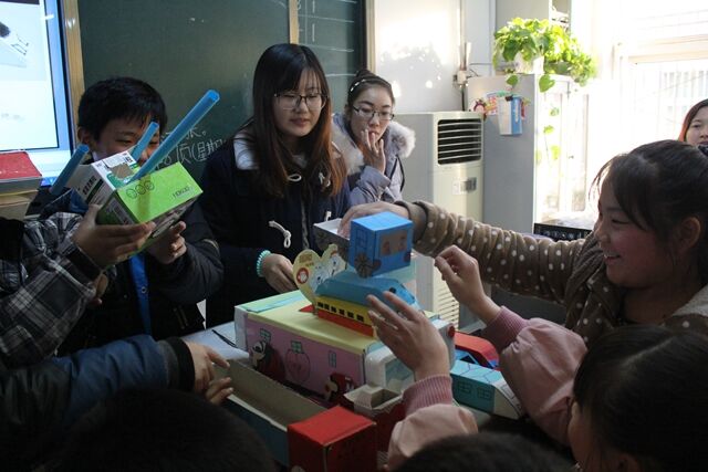 爱心筑梦,“翼”起飞翔。2015年12月3日下午,山东女子学院教育学院“爱之翼”团队一行31人赴济南市中区党家庄小庄小学开展了缤纷课堂志愿服务活动,拉开了“缤纷课堂”志愿服务活动的序幕。 本次活动面向小庄小学3-5年级9个班级的450余名学生展开,隔周四进行集中教学,志愿者前期经过小组讨论、制定策划方案、备课试讲等环节的精心准备,开展了舞蹈、美工、音乐、趣味体育、健美操和团体成长共六门课程,旨在丰富孩子们的学习生活,促进孩子全方位发展。活动伊始,小庄小学校长赵燕热情接待了服务团成员,教育学院团总支书记路敏简单讲述了团队成员安排、课程设置、总体策划等,赵校长就学校简介、学生特点、课堂组织的几个有效方法与学生进行了分享,并安排各班班主任教师与志愿者进行了活动对接,希望志愿者利用专业优势带动小庄小学第二课堂的发展,活跃校园文化,为小庄小学增添青春活力。 美工课上,志愿者引导学生利用废弃物品制作了汽车、火车、小房子等作品,将知识灵活运用于生活;舞蹈和健美操的教学则以循序渐进的方式进行,志愿者的优美身姿以及耐心的指导使孩子们学习热情高涨;声乐课堂更是将枯燥的音符化为可爱的动物形象,志愿者和孩子们一起互动学习,极大提高了孩子们的音乐兴趣;团体成长辅导的课堂氛围更是一片浓厚,“一块五毛”、“你比我猜”等游戏拉近了老师与学生的距离,促进了团队的凝聚力;趣味体育课上“多彩跆拳道”让孩子耳目一新,深得孩子们喜爱。 志愿者通过多维的课堂展示,不仅丰富了孩子们的课余生活,拓宽了孩子的视野和思维,更增加了孩子们的成长乐趣,同时志愿者能以此为契机提高服务奉献意识、实践能力和团队协作能力,真正践行“受教育、长才干、作贡献”宗旨。(路敏、冯圆圆)