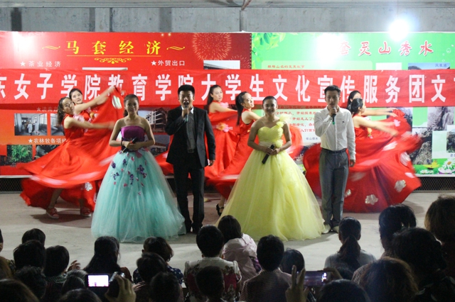 在社会实践期间,团队每天晚上为马套村村民教授广场舞,将女院校舞《舞动中国》推广到村民中去,丰富了村民的业余文化生活。在进行广场舞教学之余,还精心准备了文艺演出暨夏令营成果汇演。《小苹果》、《失恋阵线联盟》等节目,舞出了队员们积极向上的精神,舞出了新农村建设的风貌。精彩的节目不时博得了台下群众的热烈的掌声。