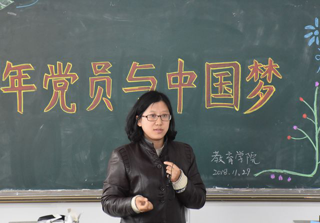2018年11月19日下午三点,在博文楼301教室,山东女子学院教育学院党总支副书记崔江宁给教育学院学生党员和部分入党申请人上党课。党课主题为,青年党员与中国梦。