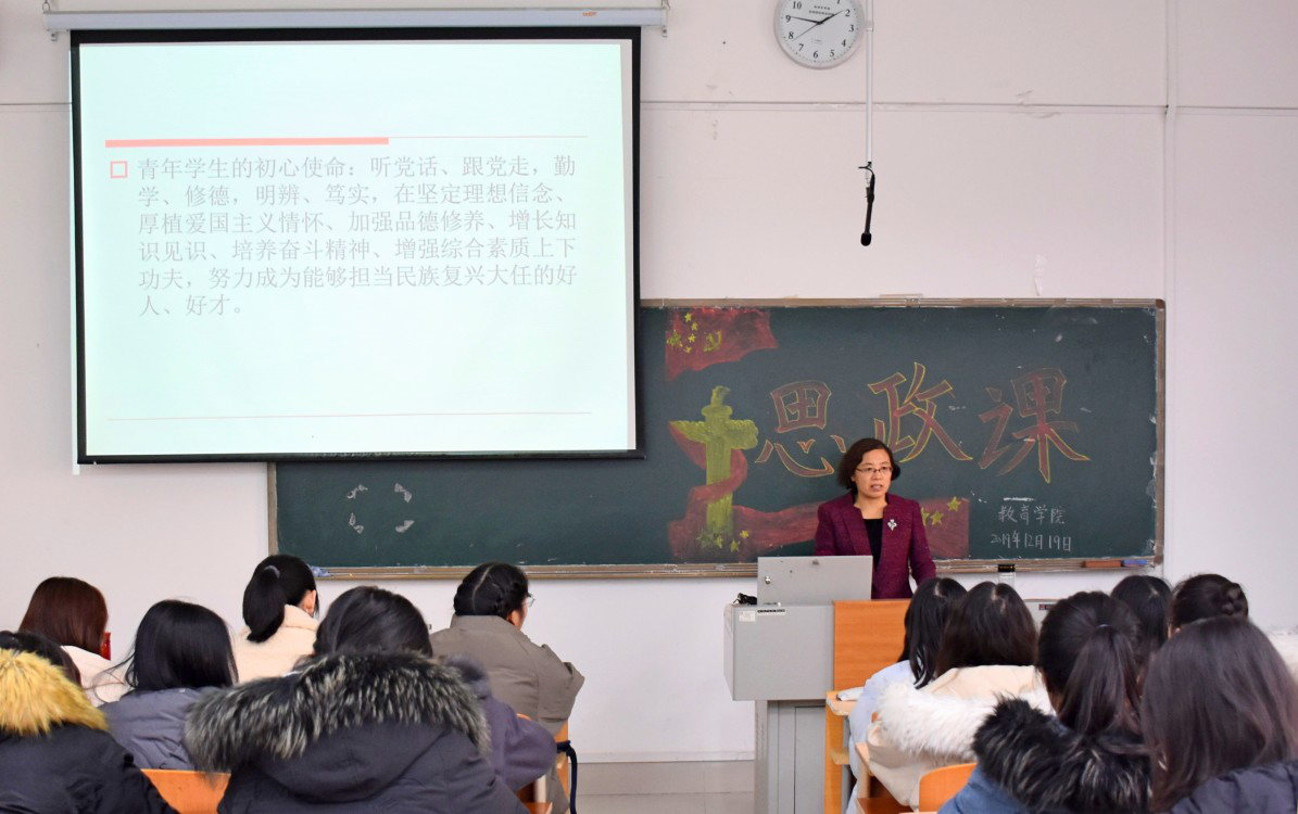 12月19日,教育学院党总支书记李君在博学楼108为40余名入党积极分子上了一堂思政课。